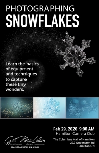 Gail’s “Intro to Snowflake Photography” Booklet ($10), filled with additional tips and information, will be available for purchase during the presentation.